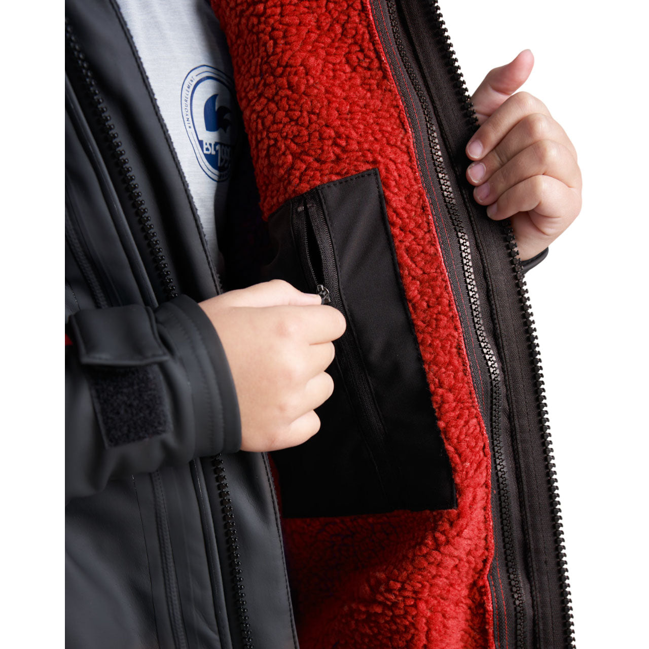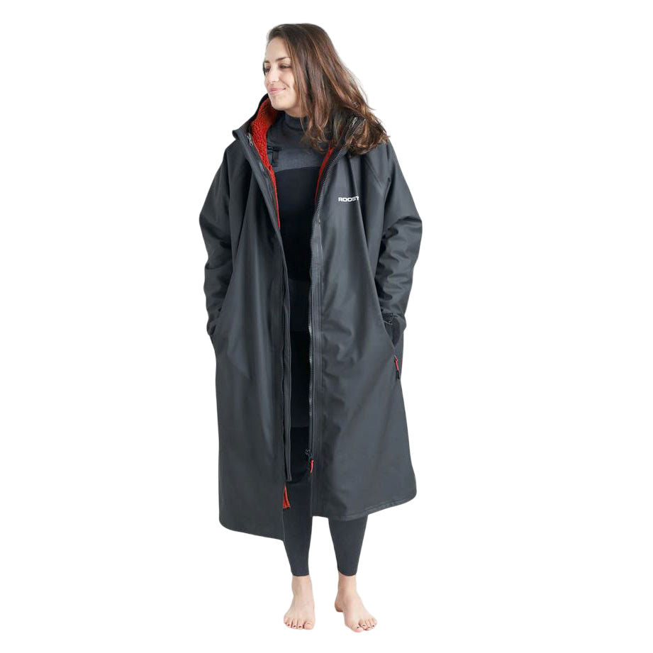 OverSize - Regenmantel 'Aquafleece Robe' von Rooster, aus wasserdichtem Aquafleece-Material und herausnehmbarem rotem Teddyfleece-Futter.